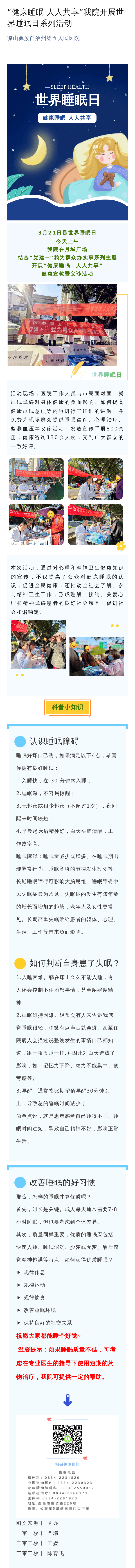 “健康睡眠 人人共享”我院开展世界睡眠日系列活动
