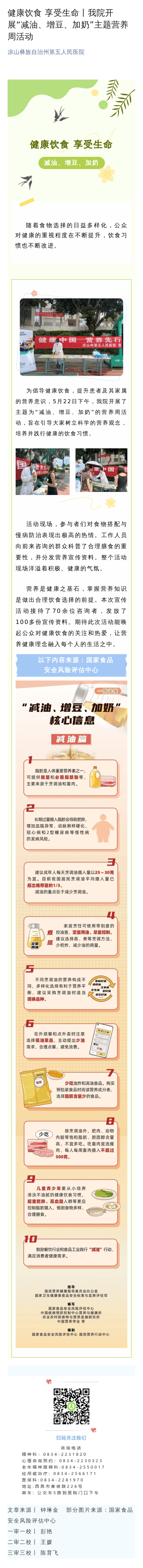 健康饮食 享受生命丨我院开展“减油、增豆、加奶”主题营养周活动