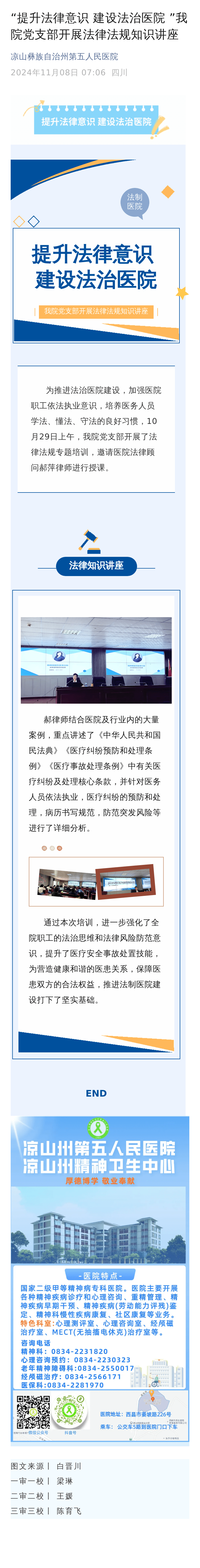 “提升法律意识 建设法治医院 ”我院党支部开展法律法规知识讲座