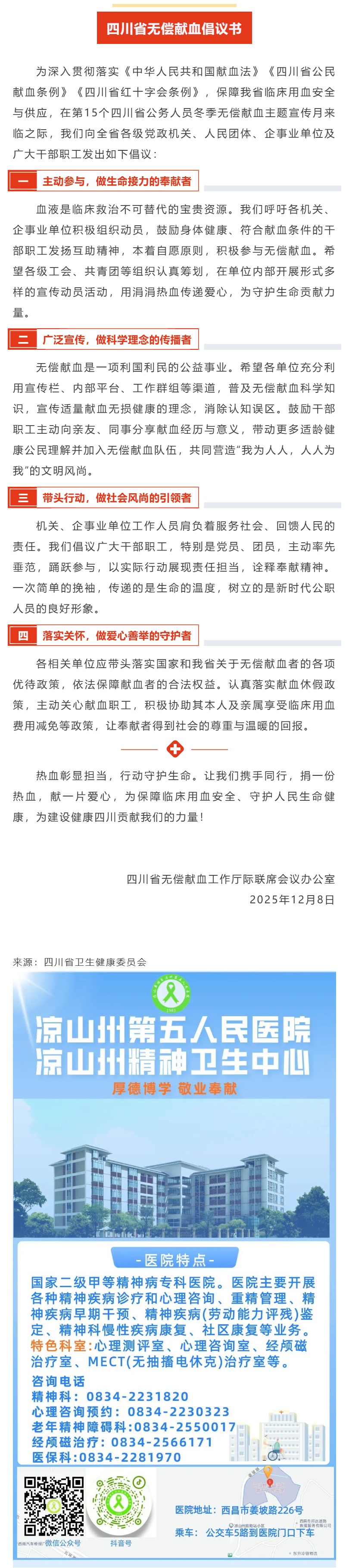 四川省无偿献血倡议书