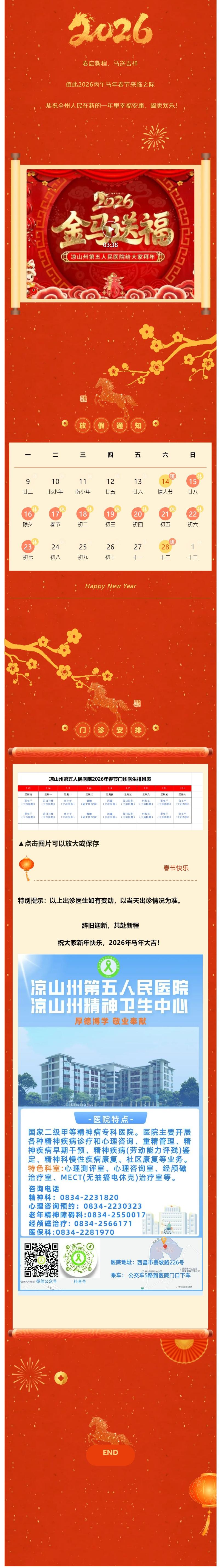 凉山彝族自治州第五人民医院(凉山彝族自治州精神卫生中心、凉山州优抚医院)于1983年经凉山州人民政府批准建立,隶属凉山州民政局,是州内唯一一所国家二级甲等精神病专科医院...