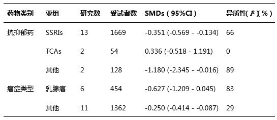 癌症患者应用抗抑郁药:疗效及可接受度探究