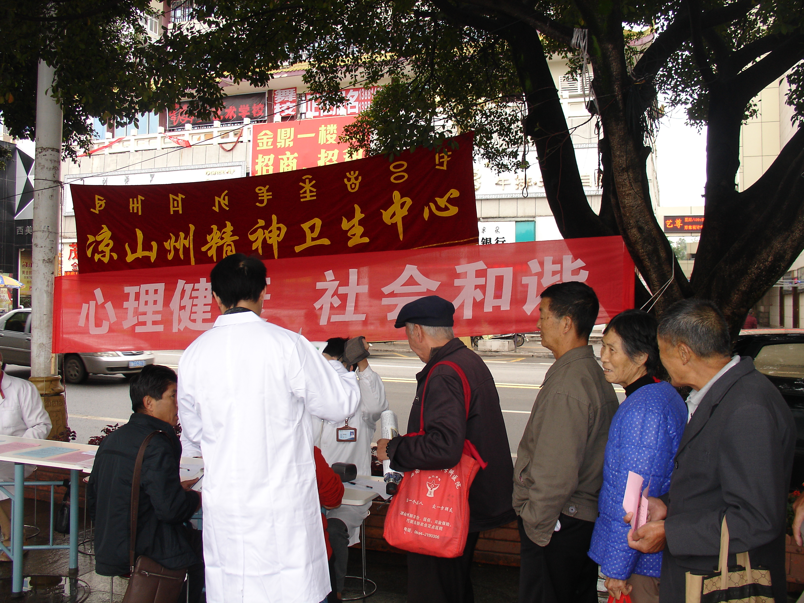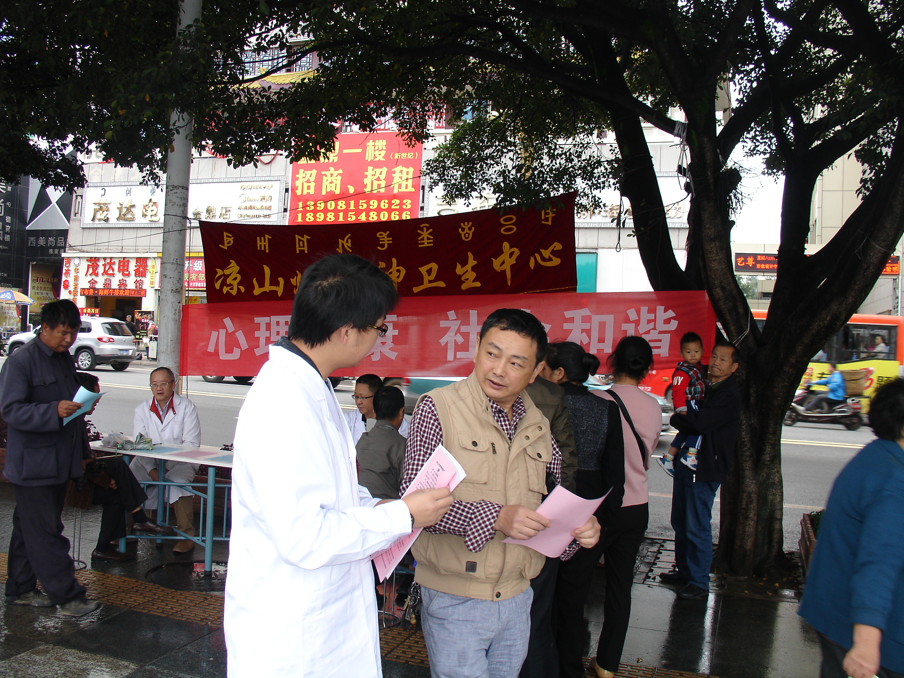 10日上午,我院由副院长院长郑从玉亲自带队走上街头,以分发传单、测血压、心理咨询的方式向广大凉山人民宣传了心里健康对于人体健康的重要意义。