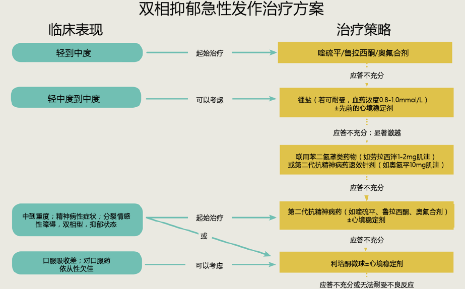 以下为双相抑郁急性发作的治疗流程(点击查看清晰大图):