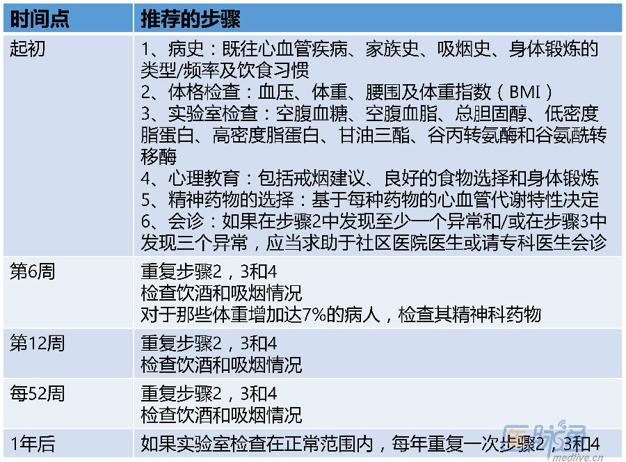 慢性精神疾病患者中代谢综合征的复查时间表