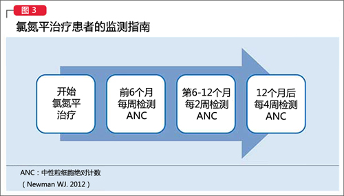 其他指南变化为临床医生进行特定患者治疗决策提供了更大的灵活性。比如,允许继续氯氮平治疗的ANC值有所降低。通常,当ANC<1,000/μL时,若处方者认为患者为可疑氯氮平所致中性粒细胞减少症,氯氮平治疗应停止;然而现在,若医生认为收益高于风险,则可继续氯氮平治疗。